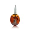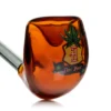This glass-themed hand pipe from Hemper is a durable and functional glass hand pipe. The deep bowl lets you pack a large amount of your dry herbs or tobacco, while the thick borosilicate glass ensures this pipe will last. This hand pipe is about 6″ long and displays a sherlock pipe shape. Cheers!