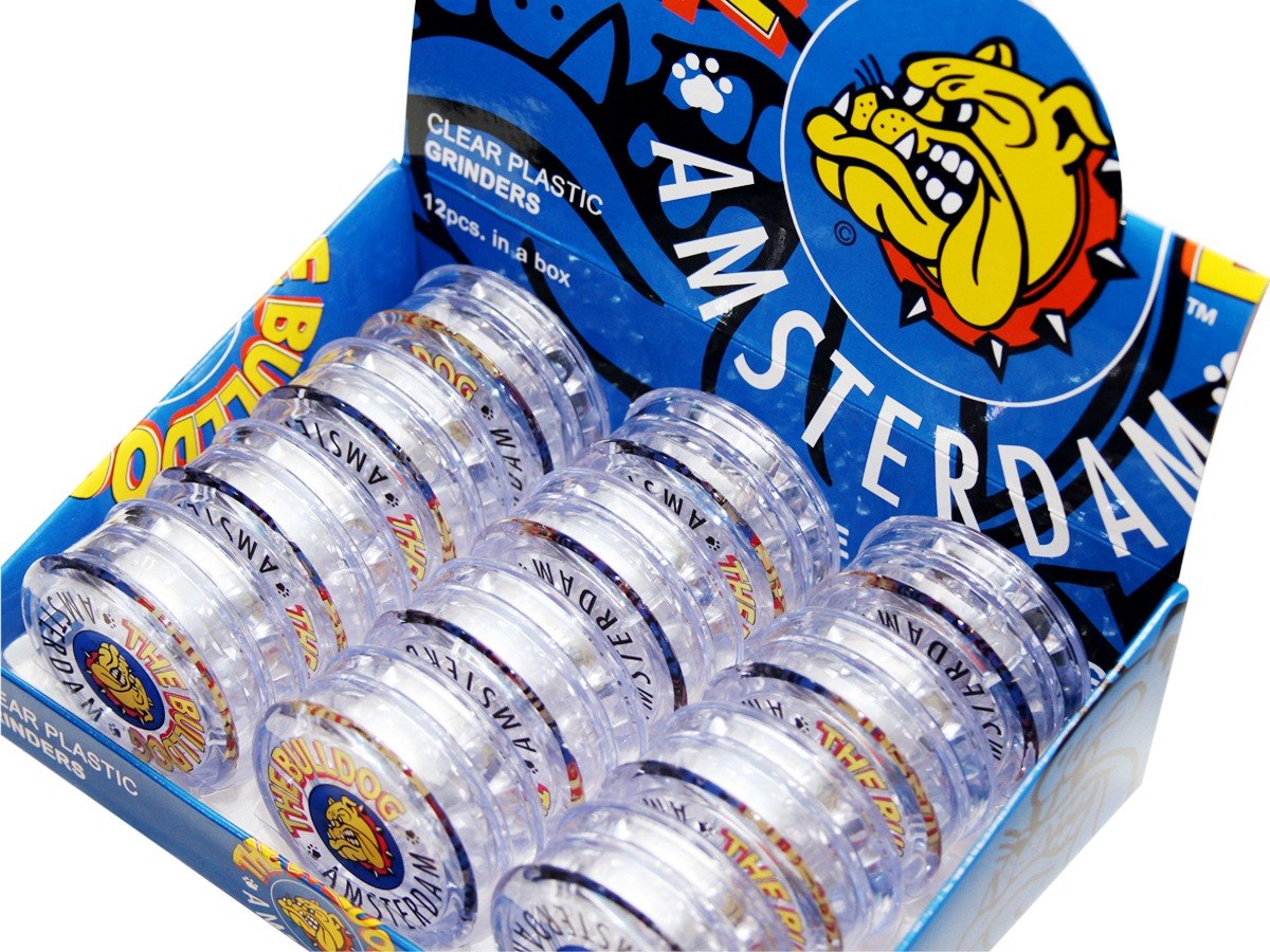 Plastic wiet-grinder van Bulldog die graag je wiet wilt vermalen!